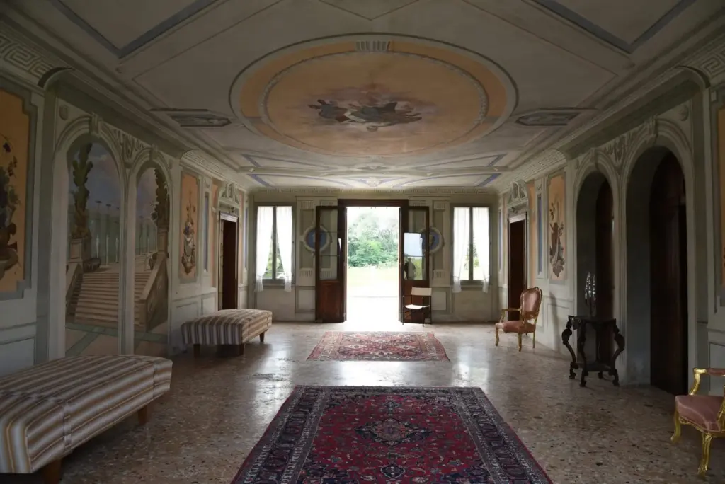 Armoniosamente inserito in un radioso parco di 125.000 m², il complesso architettonico neoclassico è costituito da un nucleo residenziale a tre piani al quale si affiancano due candide barchesse simmetriche.