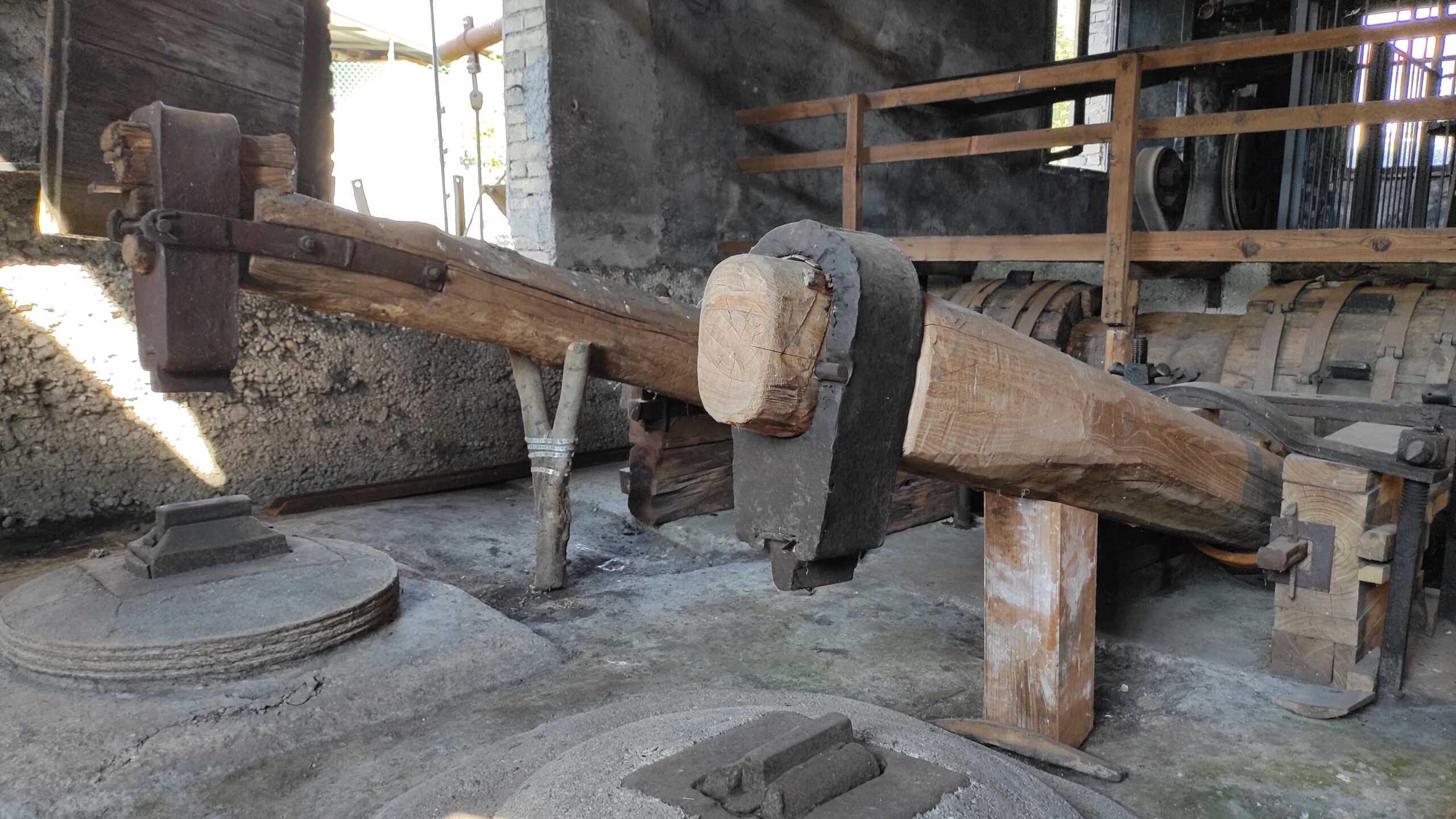All’interno della fucina due robuste leve secolari, chiamate stanghe, consentono di alzare e abbassare le paratoie che regolano il flusso d’acqua della rosta principale e della rosta mediana, situata più in basso. Quest’ultima metteva in moto un trapano a colonna, non più presente, e la sega a nastro presso la quale si trovano due incalcatrici, strumenti impiegati per il riassetto delle lame nelle ruote dei carri.